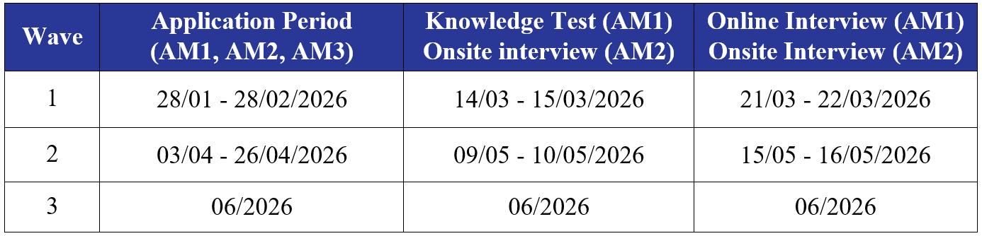– Candidates applying through AM4 must submit their program aspirations via the Ministry of Education and Training’s common admissions support system: https://thisinh.thitotnghiepthpt.edu.vn