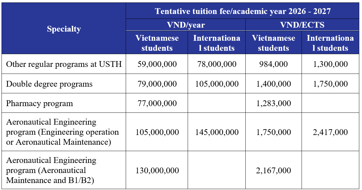 – Eligibility: Candidates who participated in the High School Graduation Examination in 2026 with subject combinations appropriate to the training programs, as specified in the USTH’s Admission Information..